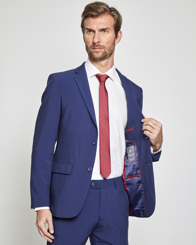 O terno azul permite a combinação com diferentes tons de gravata. Entretanto, se você não quer errar, os melhores tons são o azul, em diferentes variações, vermelho ou vinho.