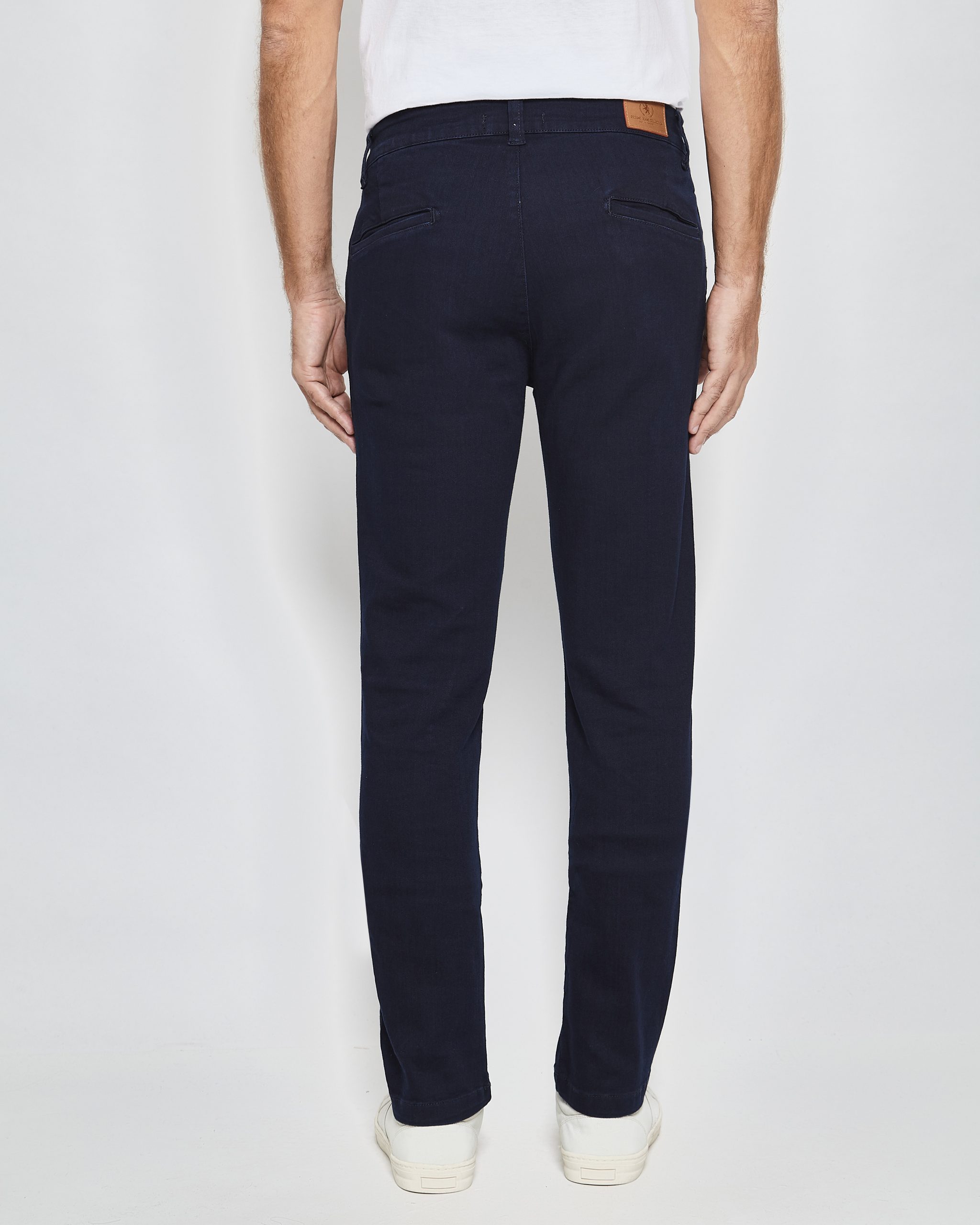REFERÊNCIA: 155Calça modelo tradicional levemente ajustada na perna com lavagem jeans amaciado azul escuro. Possui cintura média, acabamento pespontado em marinho, bolso faca na frente e bolso embutido nas costas, cós com passantes e fechamento frontal por botão e zíper. Tecido jeans com construção de malha que proporciona extremo conforto no vestir.
